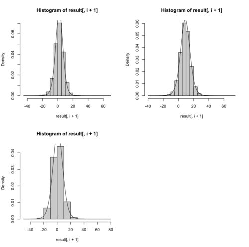 正規線形モデルにおけるパラメータ()に対する共役事前分布は,正規逆カイ2乗分布(normal inverse chi-square distribution)であることが知られています(Hagan and Forster 2004: pp.305-307, 繁桝 1985: pp.176-177). 正規逆カイ2乗分布の乱数を生成…